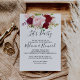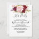Diese tropische und romantische Einladung ist perfekt für eine rustikale Verlobung. Das künstlerische Bordo Marsala-Design ist mit Aquarellfarben, Grün, Rosa, Bordeaux und Rosa Rose mit Grünpflanzen in einem anmutigen und strahlenden Bouquet in der Blume eingerichtet. Diese Einladung kann für eine Verlobungsfeier, Ruhestand Party, Babydusche oder jede Veranstaltung genutzt werden!