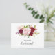 Die rote, tropische und romantische Postkarte der Brautjungfrau ist perfekt für ein einfaches Brautparty. Das künstlerische Bordo Marsala-Design ist mit Aquarellfarben, Grün, Rosa, Bordeaux und Rosa Rose mit Grünpflanzen in einem anmutigen und strahlenden Bouquet in der Blume eingerichtet.