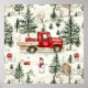 Ein niedliches, klassisches Winterdesign mit einem Vintagen roten LKW, Bäumen, Schnee und einem Schneemann!