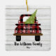 An der Vorderseite dieses wunderschönen Ornaments ist ein rustikaler Vintager LKW in rotem und schwarzem Büffel kariert mit einem Baum im Rücken und frohe Weihnachten auf der Rückseite. Sie können Ihre eigene Nachricht oder Ihren eigenen Familiennamen am unteren Ende des Datums hinzufügen. Fügen Sie Ihr Foto auf die Rückseite! Der LKW und das karierte Muster sind trendig und sehen auf dem Holzhintergrund gut aus.