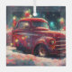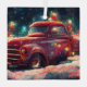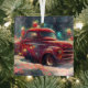 Klassischer roter Abholwagen für die Weihnachtsbaumlieferung.