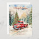 Die Red Truck Weihnachtskarte ist eine festliche und herzliche Urlaubskarte, die den Charme einer klassischen Weihnachtstradition feiert. Im Mittelpunkt des Designs steht ein hellroter LKW, illustriert mit nostalgischen Details und mit einem üppigen Weihnachtsbaum in seinem Bett gefüllt. Diese zeitlose Weihnachtsbaumfotografie im roten LKW ruft sofort Wärme, familiäre Ansammlungen und die Freude an der Vorbereitung auf die Ferienzeit hervor. Das Design verbindet das fette Rot des Lastwagens mit dem satten Grün des Weihnachtsbaumes und schafft so die quintessente rot-grüne Weihnachtspalette. Das rustikale und dennoch gemütliche Gefühl des LKW mit der Weihnachtsbaumszene wird durch die elegante Schrift in der modernen Kalligraphie oder moderne Bürstenschrift verstärkt, die oft eine fröhliche Weihnachtsbotschaft zeigt. Diese weihnachtliche LKW-Karte verbindet rustikalen Charme mit klassischem Design und eignet sich hervorragend für die Verbreitung herzlicher Wünsche. Die Kombination aus rotem LKW, immergrünem Baum und festlicher Typografie macht es zeitlos und einladend, eine Karte, die das Wesen eines traditionellen Weihnachtsgrüssen in einer Art und Weise einfängt, die frisch und fröhlich ist.