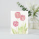 Eine weiche und hübsche Postkarte mit einem Trio aus roten Frühlingstulips, gezeichnet in farbigen Bleistift.