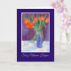 Ein hübscher Muttertag mit dem Gruß in Walisisch und einer blauen Vase von Scarlet Tulips, aus einem Ölpastellgemälde von Judy Adamson.