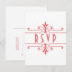 Einfache und elegante Extravagante Ornamental Wedding Response Postcard in Rot und Weiß mit einer raffinierten Art Deko Stil dekorativen blüh Rahmen. Einfach zu anpassen, fügen Sie einfach Ihre Hochzeitsdetails in den Textfeldern zur Verfügung gestellt. Klicken Sie auf "Anpassen", um weitere Personalisierungsoptionen zu erhalten.