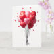 This design shows a bunch of red and pink balloons floating on a plain white background. Some balloons are round, and a few are heart-shaped, giving the whole card a romantic feel. The balloons look shiny, with light reflections that make them seem softly lit and smooth. Thin dark strings hang down from the balloons and come together in a small bundle near the bottom. Smaller heart shapes are scattered around the main group, like little love notes drifting in the air. There isn’t any text on the front, so the picture is the main message. It feels sweet and cheerful, perfect for a simple Valentine’s hello 💕❤️.