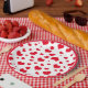 Red Valentine Hearts Random Scattered Muster Pappteller