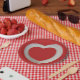 Red Valentine mit Mitte weißem 3D-Herz Pappteller