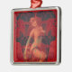 Viereckiges Premium-Ornament mit einem Vintagen Bild aus den 20er Jahren eines kaum bedeckten Flappers, der durch einen roten Schleier sichtbar ist. Sehen Sie sich die gesamte Roaring 20s Ornament-Kollektion in den SPEZIELLEN TOUCHS an. | Abschnitt Gastgeschenke.