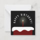 Geburtstagskarte mit einem illustrierten Geburtstagskuchen aus rotem Samt mit weißem Zuckerguss, überragt von einer hellen Rotweisskerze, umgeben von kurvigem Text darüber "Glücklicher Geburtstag!". Farben aller Elemente sind auf dieser Karte anpassbar. Behalt einen Stash dieser generischen Geburtstagskarten, um mit Ihren Geburtstagsgeschenke oder für Notfälle zu enthalten!