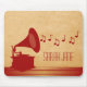 Die Vintage Gramophone Mousepad in dunkelrot mit einer Silhouette eines altmodischen Grammophons und einer Kaskade von Noten auf einem digitalen, kunstvoll gerenderten Papierhintergrund. Dieses schicke Mousepad fügt Ihrem Arbeitsbereich einen Vintagen Flair hinzu und ist perfekt für jeden Musikfreund geeignet. Einfach anzupassen, einfach mit dem Text Ihrer Wahl personalisieren. Klicken Sie auf den Button "Anpassen", um weitere Personalisierungsoptionen zu finden.