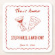 Schützen Sie Ihre Tische mit einem Hauch von Spaß! Dieser rot-weißliche Rahmen, ein eher italienischer Untersetzer für Hochzeitspapier, zeigt spielerische, von Hand gezeichnet Abbildungen in Rot - eine Pizzaseile und ein festliches Getränk-Glas mit Bogen - umgeben von einem skizzenhaften Skizzenrahmen auf einem knackigen, weißen Hintergrund. Mit lässigen handgeschriebenen Schriftart sorgt dieses Design für eine lustige und romantische Touch zu Ihrem italienisch geprägten Fest. Ideal für Cocktail-Stunden, Empfang-Tische oder Espresso-Bars - sowohl dekorativ als auch funktionell, genau wie Liebe!