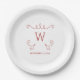 Red Whimsical Geblüht Monogram Paper Teller