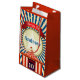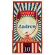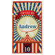 Cooles Circus Theme Design mit 3 rot-weiß gestreiften Big Top mit blau-weiß Retro-Burst Hintergrund.Roter Sternrand. Ideal zum Geburtstag oder für jeden Zirkus oder jede Karnevalveranstaltung. Anpassen mit Ihrem eigenen Namen/Text und Alter. 2022 Miss Sassy Party Designs