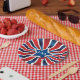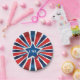 Ein patriotisches Design in fett roten, weißen und blauen Sonnenburststreifen mit einem blauen Sternrahmen und USA Monogramm. Diese Papiertafel eignet sich hervorragend für sportliche Party und patriotische Feiern. Sie können das "USA"-Monogramm durch jeden anderen Text ersetzen, indem Sie den Beispieltext in der Entwurfsvorlage bearbeiten. Wenn Sie Schriftart und Schriftart ändern möchten, verwenden Sie einfach die Schaltfläche "Anpassen" und nehmen Sie Ihre Änderungen vor. Hier finden Sie die passenden Papierservietten: