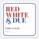 Moderne und minimalistische "Red, White and Due" Babydusche mit patriotischen amerikanischen Flaggenfarben und fett formatierter Typografie.