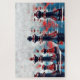 This chess design features a red white and blue color scheme with the King, Queen, Bishop and pawns.