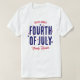 Jetzt können Sie den Amerikanische Unabhängigkeitstag dieses Jahres stilvoll mit einem personalisierten T - Shirt feiern! Lassen Sie Ihren patriotischen Geist mit einem "Amerikanische Unabhängigkeitstag" in einem kühlen Schriftart, begleitet von zauberhaften roten und blauen Sternen, ausstrahlen. Passen Sie das Shirt weiter an, indem Sie Ihren Familiennamen oder "Family Wiedersehen" hinzufügen - perfekt für Ihre Ansammlung im Sommer mit den Lieben. Feiern Sie den Unabhängigkeitstag wie nie zuvor mit diesem besonderen Edition T - Shirt!
