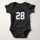 Niedlicher Bodysuit für Kleinkinder. Mama und Liebe Sport. Es ist nur natürlich, dass das Baby auch sollte. Niedlicher Babybodyanzug in Rot, Weiß und Stahlblau. Sie können den Namen und die Spielernummer auf der Vorder- und Rückseite des Trikots anpassen. Nicht nur für Fußballfans. Jeder Sportfans wird dieses Design schätzen. Baseball, Basketball, Fußball, Eishockey und vieles mehr.