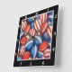 This square wall clock showcases a bold design featuring red, white, and blue footballs, creating a vibrant tribute to American sports culture. Ideal for game rooms, bedrooms, or fan spaces, it blends patriotic flair with sporty style for any football enthusiast’s decor. It is highly customizable, allowing for changes to the colors of the clock's border and numbers (1-12) to match specific team colors. This makes it an ideal personalized gift or decor for sports fans, football teams, or themed game rooms.