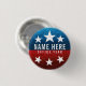 Die Farben der roten, weißen und blauen amerikanischen Fahne strahlen wunderbar aus. US Flagge-Muster zeigt einen Imitat-Glitzer-Effekt. Name und politische Bürovorlage ist fett, leicht lesbar und anpassbar. Perfekt für politische Kampagnen während der Wahlen.