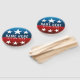 Die Farben der roten, weißen und blauen amerikanischen Fahne strahlen wunderbar aus. US Flagge-Muster zeigt einen Imitat-Glitzer-Effekt. Name und politische Bürovorlage ist fett, leicht lesbar und anpassbar. Perfekt für politische Kampagnen während der Wahlen.