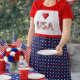 Dieser Ausdruck in der Schürze zeichnet sich durch ein patriotisches Design aus. Ein roter und weißer Stern ist auf einem massiven blauen Hintergrund und der weiße Teil hat ein rotes Herz und Flagge inspiriert USA. Tragen Sie diese Schürze auf Ihre Party vom 4. Juli. Ideal für Ansammlungen im Urlaub.