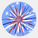 Aufkleber in Rot-Weiß und Blau-Sternexplosion. Stil und Hintergrundfarbe können angepasst werden.
