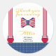 Babydusche Danke Sticker Celebrate im Stil mit diesen trendigen "Red White and Blue Bow Krawatte and Suspenders 4th Of July" Babydusche Aufkleber. Für passende Artikel, oder ein abgestimmtes Produkt, das nur für Sie erstellt wurde, kontaktieren Sie mich bitte über Zazzle Chat und ich würde mich freuen, es zu erstellen!