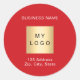 Ein roter Hintergrund, weißer Text. Personalisieren Sie Ihren Firmennamen, Ihr Logo und Ihre Adresse oder Ihren Text und fügen Sie diese hinzu.