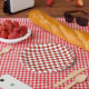 Red& White Checkered Pattern Mid Century Retro Pappteller