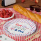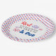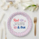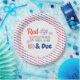 Rotes Weiß und Fälligkeit Juli Schwangerschaftsankündigung und Babydusche
