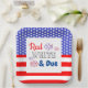 Rotes Weiß und Fälligkeit Juli Schwangerschaftsankündigung und Babydusche