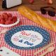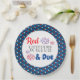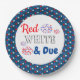 Rotes Weiß und Fälligkeit Juli Schwangerschaftsankündigung und Babydusche