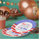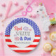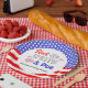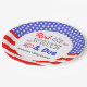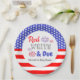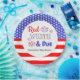 Rotes Weiß und Fälligkeit Juli Schwangerschaftsankündigung und Babydusche