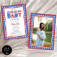Feiern Sie Ihren kleinen Firecracker mit der Red White & Due Stars 4. Juli Foto Baby Shower Einladung. Mit patriotischen Stars in Rot, Weiß und Blau Set dieses festliche Design den Ton für eine Sommerfeier voller Freude und Vorfreude. Ideal für eine thematische Babydusche rund um den Unabhängigkeitstag, bringt Familie und Freunde zusammen, um die Mama-to-be im klassischen amerikanischen Stil zu ehren.