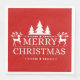 Papier Serviette Standard Abendgröße in Rot mit einem niedlichen Frohen Weihnachtsbaum Rentierprint. Ideal für alle Ihre Feierlichkeiten. Passen Sie dieses Objekt an oder kaufen Sie, wie es ist.