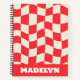 red& white geometric pattern monogram name notizbuch