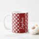 Dieses Design zeichnet sich durch ein fröhliches Gingham Karo kariertes Muster in traditionellem Rot und Weiß aus.
