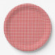 Rot-Weiß Gingham-PAPER PARTY TELLER-Die winzigen Quadrate von Gingham in einem allover Hintergrundmuster. Gingham-Muster sind in verschiedenen Farben erhältlich. Die Zazzle-Party-Versorgung wird koordiniert. Wählen Sie eine beliebige Zazzle Paper Teller Größe aus.