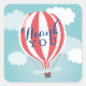 Lieblich stylish Dankeschön Sticker, entworfen mit einer originellen Abbildung eines rot-weiß gestreiften Heißluftballons, der hoch in den blauen Himmel mit weißen Wolken fliegt.