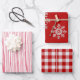 Red White Lines Silver Snowflake Red White Kariert Geschenkpapier Set