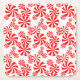 Fest roter und weißer Pfefferminz wirbeln Süßigkeiten in einem Allovermuster auf einem Untersetzer.