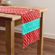 Red White Polka Dots Bright Aqua Ribbon Monogram Kurzer Tischläufer