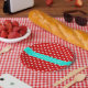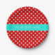 Red White Polka Dots Bright Aqua Ribbon Monogram Pappteller