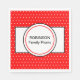 Personalisierte Picnic Einwegservietten für die Familie. Personalisieren Sie den Nachnamen Ihrer Familie in Großbuchstaben. Klicken Sie auf Anpassen, um den Familiennamen zu erhöhen/zu verringern. Der weiße Polka ist auf rotem Hintergrund mit doppelten Tellern und weißen Servietten. Gutes Sommerzeitmuster für ein Treffen mit Familie und Freunden für Picknick und GRILLEN. Original Kunstwerke und Design © TamiraZDesign.