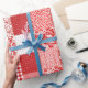 Red White Quilted Danish Star Squares Geschenkpapier