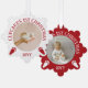 Red White Rabbit Paw Prints Bunny's 1. Weihnachten Ornament Karte