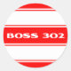 Red White Race Streifen Boss 302 Motor Sticker. Spaß rund Aufkleber für Muskelwagenbesitzer und Fahrer. Kaufen Sie noch heute einen Aufkleber und kleben Sie ihn irgendwo hin!