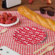 Diese knallrote Weihnachtsplatte mit weißem Weihnachtsbaum und Rentierdekor lässt Ihre Geschenke festlich und niedlich aussehen. Die Hintergrundfarbe kann geändert werden, klicken Sie einfach auf "Bearbeiten mit dem Designwerkzeug".